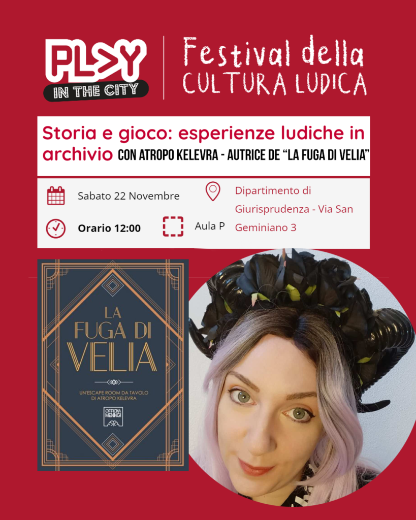 In occasione di Play in The City – Festival delle Cultura Ludica, Sabato 22 Novembre alle ore 12 presso il Dipartimento di Giurisprudenza in Via San Geminiano 3 – Aula P a Modena si terrà la conferenza “Storia e gioco: esperienze ludiche in archivio“